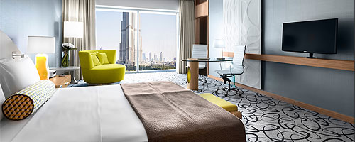 угловой номер с видом на Бурдж-Халифа. В номерах: 1 кровать