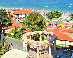 находится в курортном районе Золотые Пески, в 18 км от г.