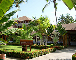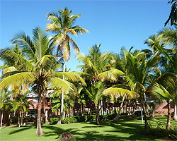 от основной территории аллеей кокосовых пальм, хороший вход