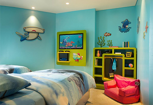 спальня для детей с кроватями Twin, лаунж с