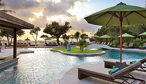 при этом, имеют вид на территорию отеля с главным бассейном