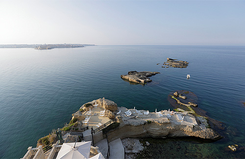душевой кабиной. Вид на море и остров Ортигия.