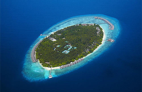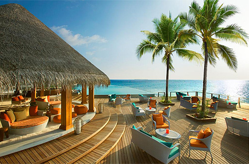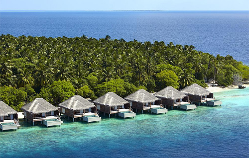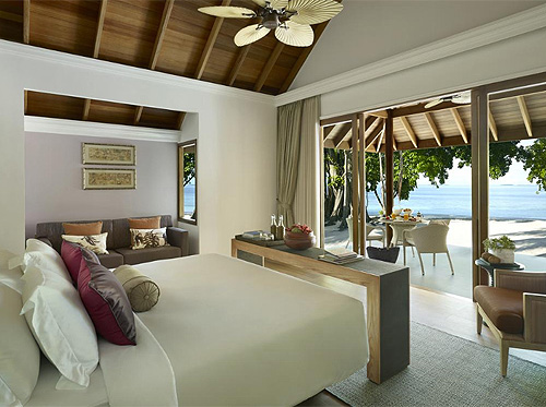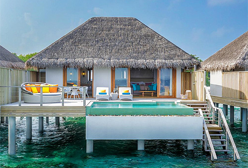 Расположен над водой в лагуне, состоит из 2 спален, крытых и