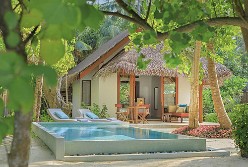 кушеткой, персональным бассейном и спуском в лагуну.