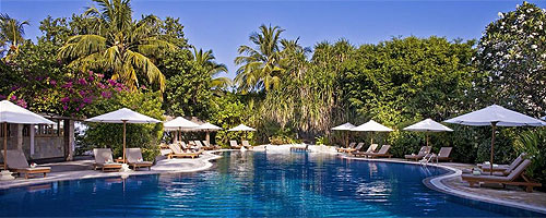 приватной части острова. Небольшой бассейн с шезлонгами и