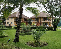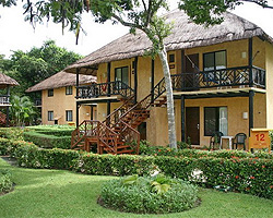 2-этажных бунгало с крышами из пальмовых листьев, оформлены