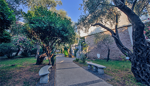 Отель окруженный густой средиземноморской растительностью,