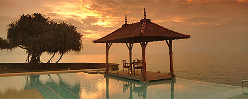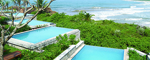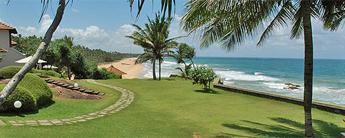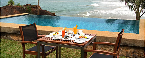 балкон с видом на сад и океан.