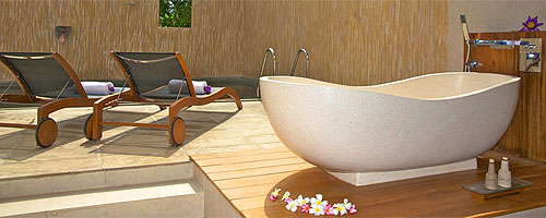 балкон, просторная ванная комната на открытом воздухе с