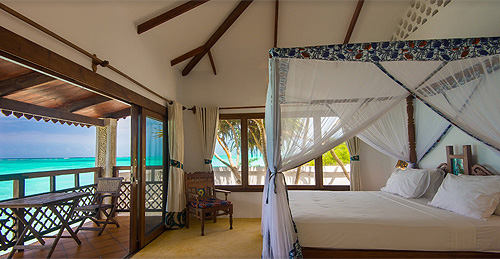 кроватями и видом на море;
